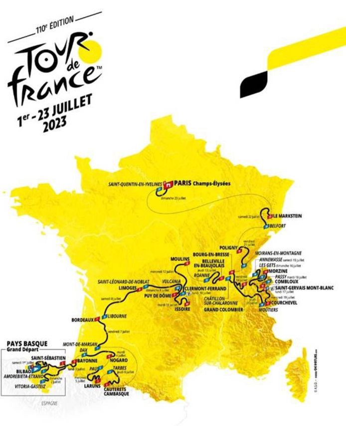 Tour de France 2023 Route stage 1. PARIS France VN It may be a truism that the Tour de France Hommes is always won in the mountains but this will certainly be the case in the 2023 edition. The July 1-23 Tour starts in Bilbao Spain and.